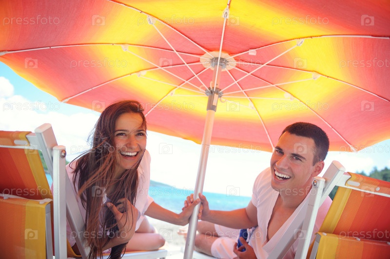 Счастливая пара отдыхает на пляже