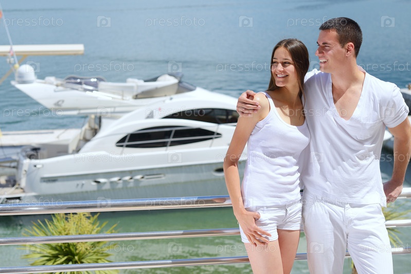 Молодая пара отдыхает на яхте