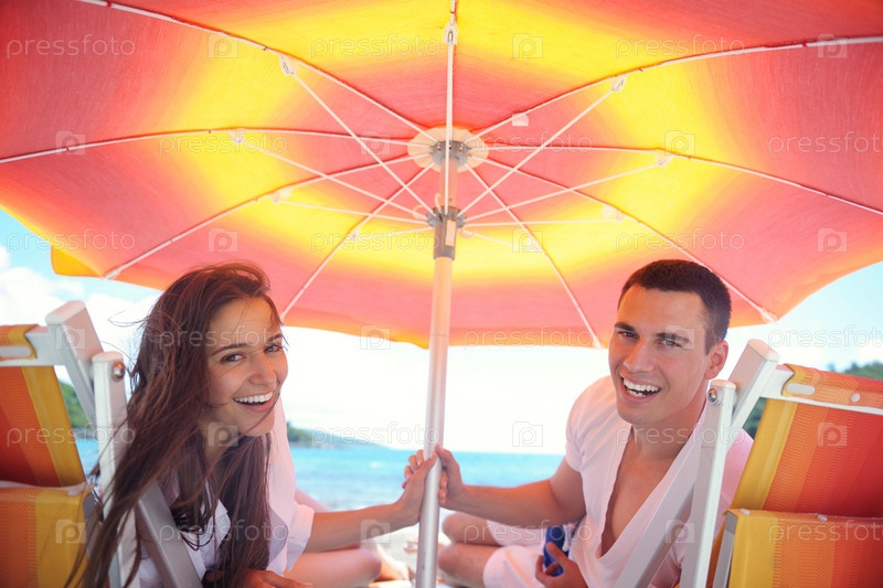Счастливая пара отдыхает на пляже