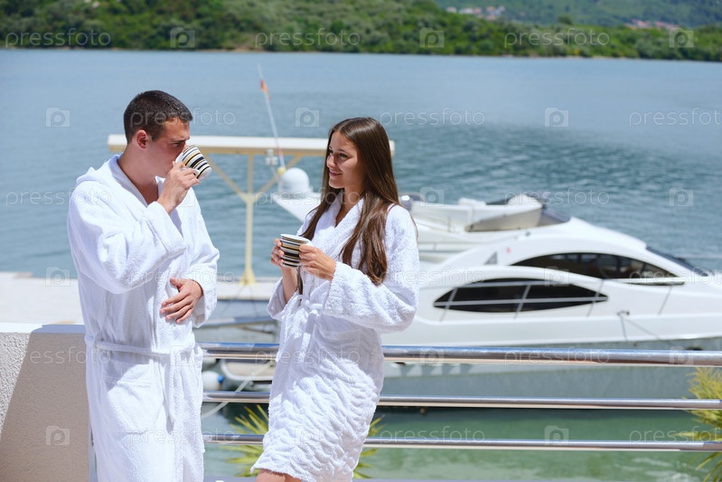 Молодая пара отдыхает на яхте