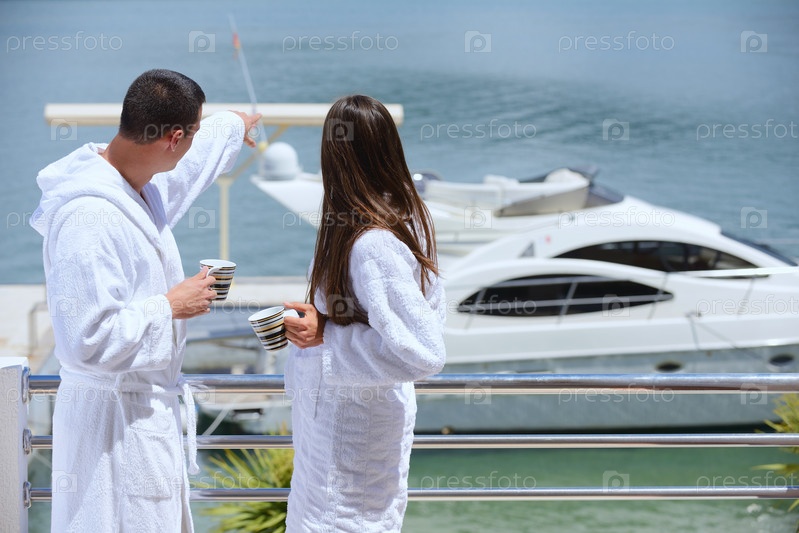 Молодая пара отдыхает на яхте
