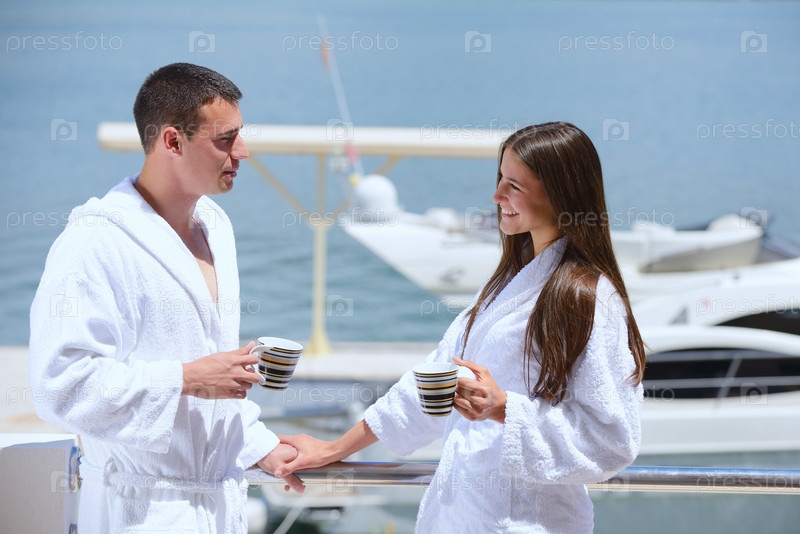 Молодая пара отдыхает на яхте