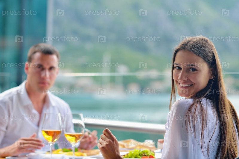 Пара обедает в ресторане