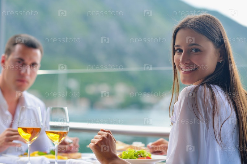 Пара обедает в ресторане