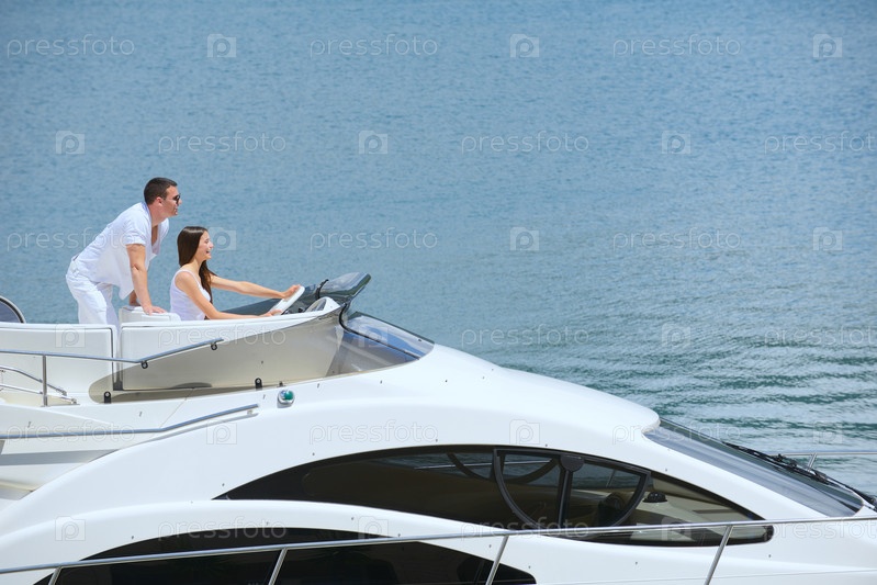 Молодая пара отдыхает на яхте