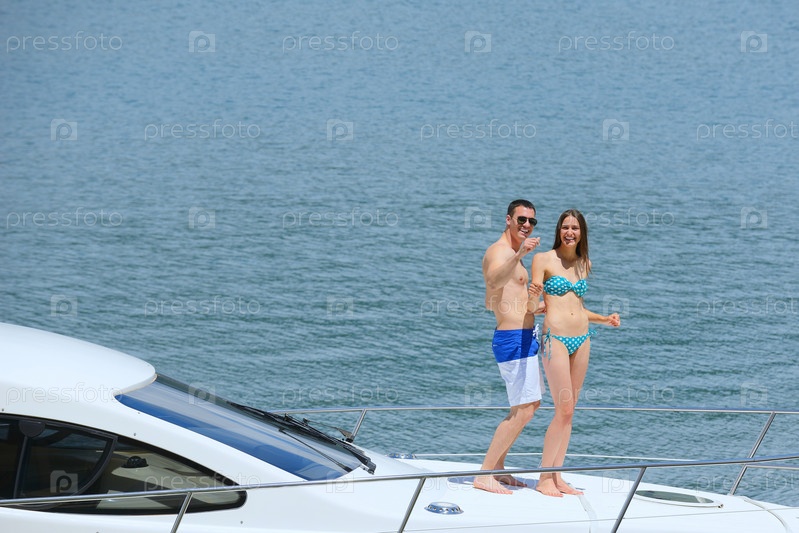 Молодая пара отдыхает на яхте