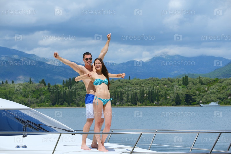 Молодая пара отдыхает на яхте