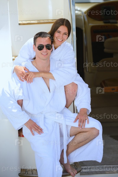 Молодая пара отдыхает на яхте