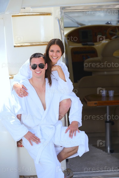 Молодая пара отдыхает на яхте