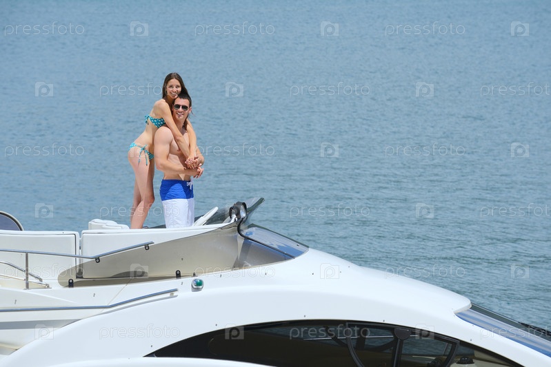 Молодая пара отдыхает на яхте