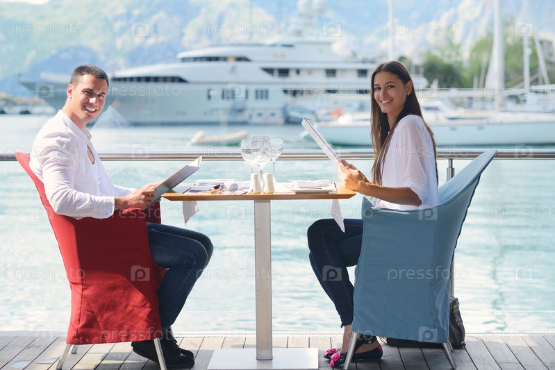 Пара обедает в ресторане