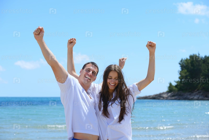 Счастливая пара отдыхает на пляже
