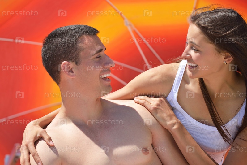 Счастливая пара отдыхает на пляже