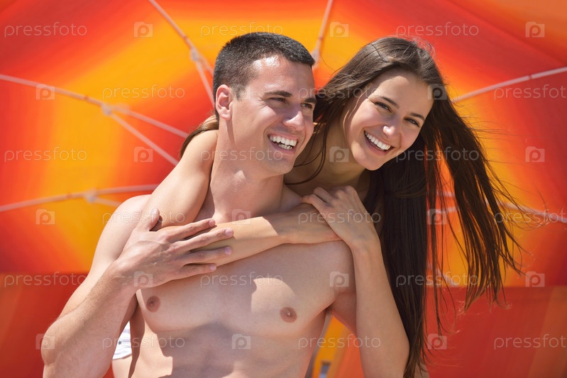 Счастливая пара отдыхает на пляже