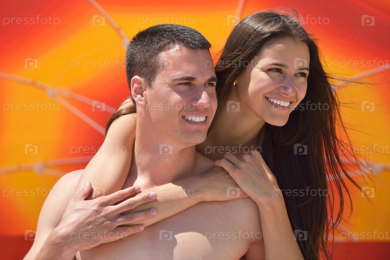 Счастливая пара отдыхает на пляже