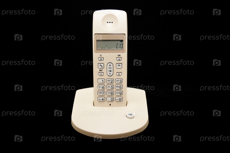 Белый беспроводной домашний телефон на черном фоне