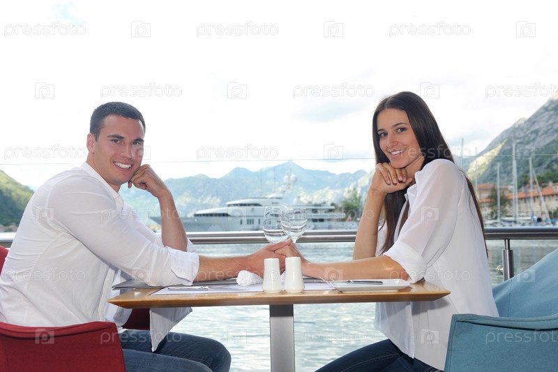 Пара обедает в ресторане