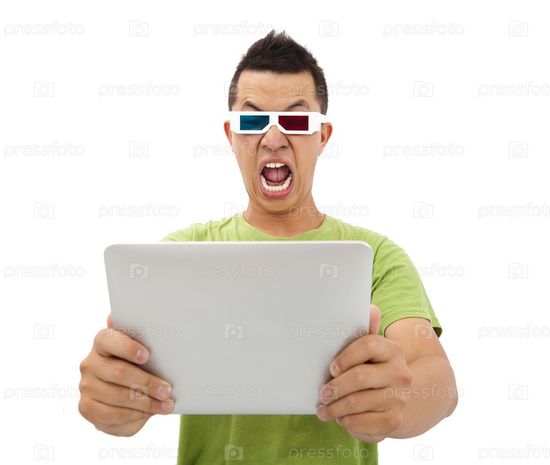 Удивленный молодой человек в 3D-очках