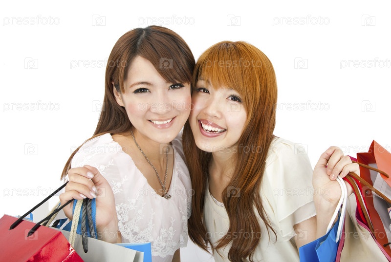 Счастливые молодые девушки с покупками