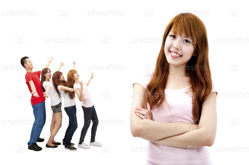 Азиатская девушка и счастливые молодые люди