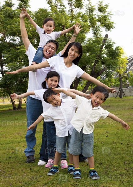 Счастливая азиатская семья в парке