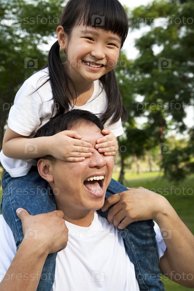 Счастливая девочка играет с отцом
