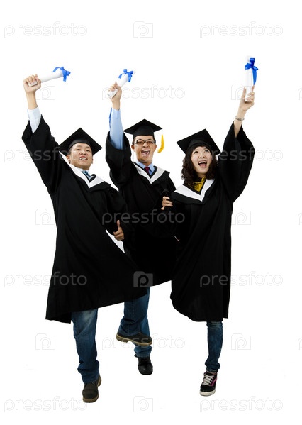 Группа выпускников, изолированных на белом фоне