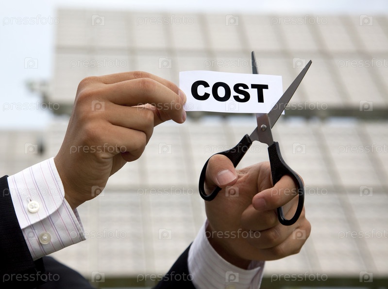 Бизнесмен стрижет надпись СТОИМОСТЬ
