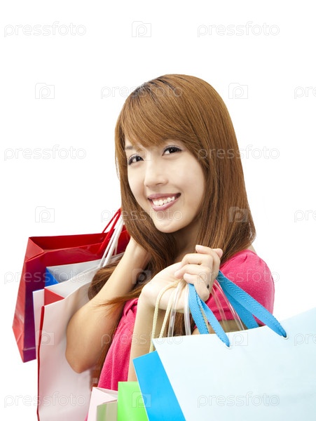 Счастливая молодая женщина с сумками