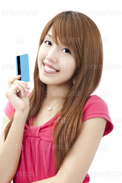 Азиатская женщина с покупками и кредитной картой