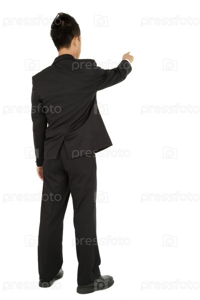 Деловой человек указывает на что-то