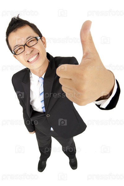 Азиатский бизнесмен показывает большой палец