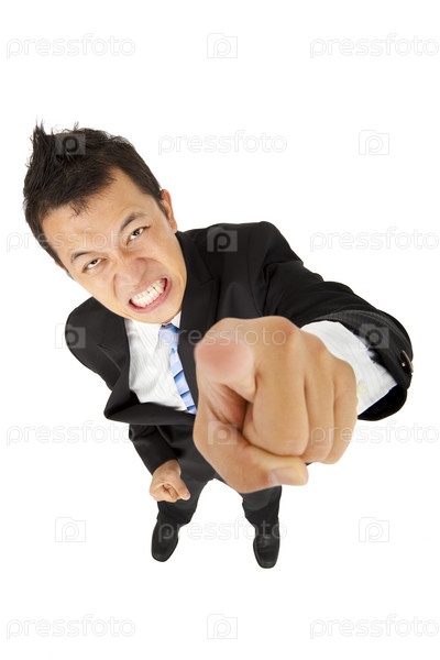 Деловой мужчина указывает пальцем в камеру