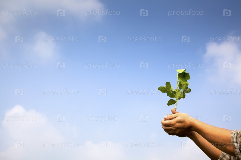Рука фермера держат росток