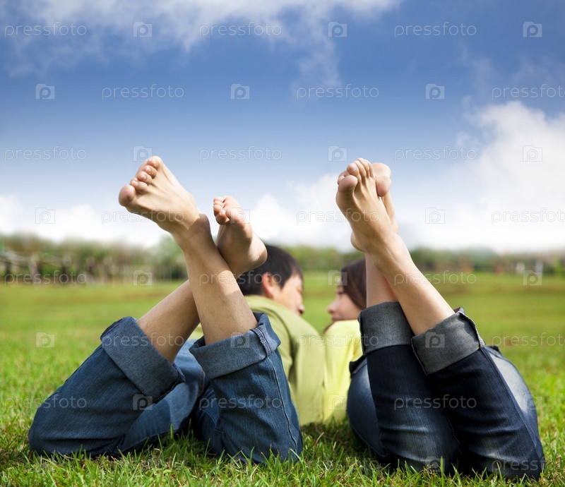 Счастливая пара на траве