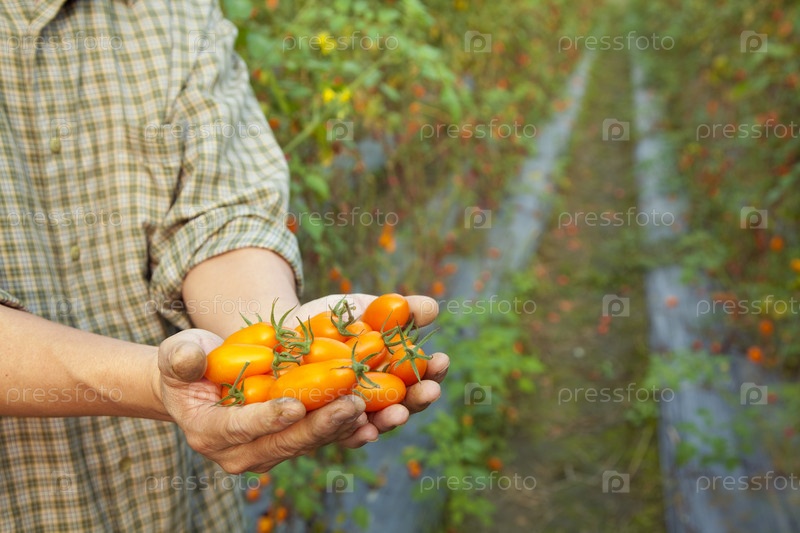 Фермер со спелыми помидорами