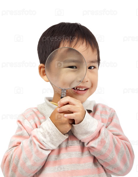 Азиатский мальчик с лупой