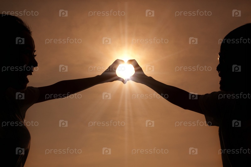 Молодая пара с руками в форме сердца