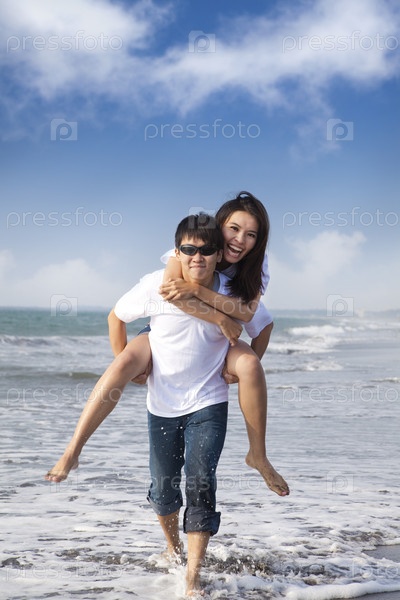 Счастливая пара на пляже