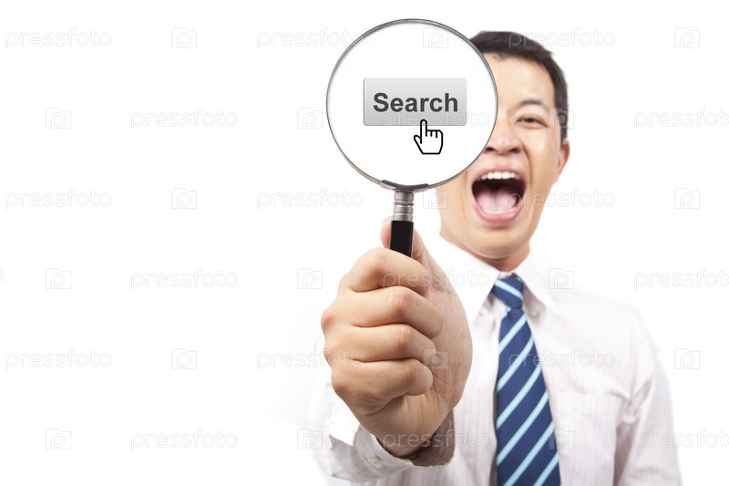 Счастливый бизнесмен с лупой