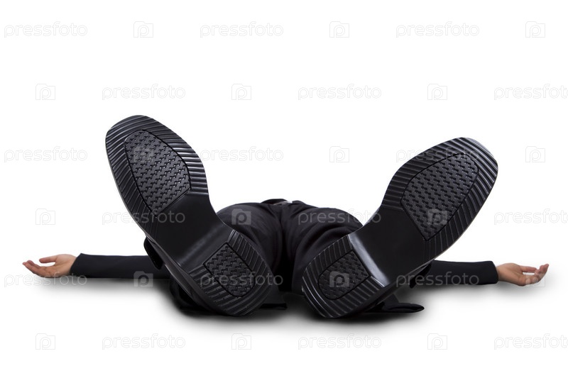 Бизнесмен лежит на земле