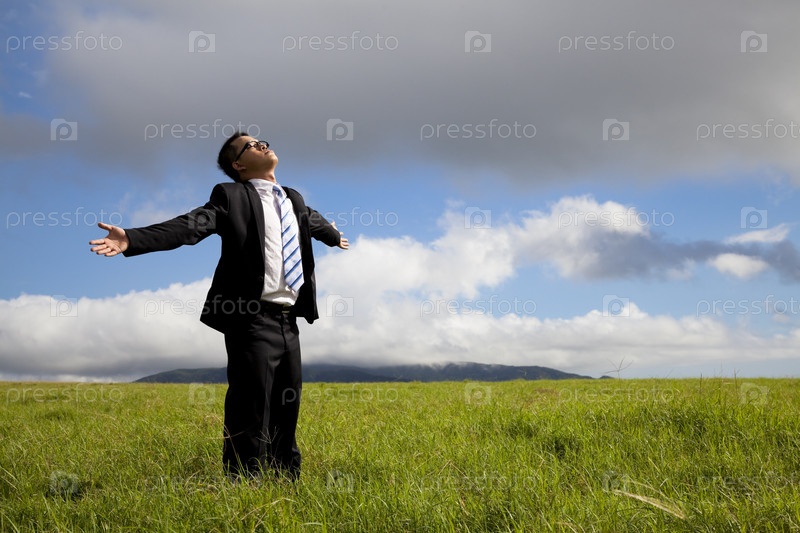 Молодой человек на зеленом поле