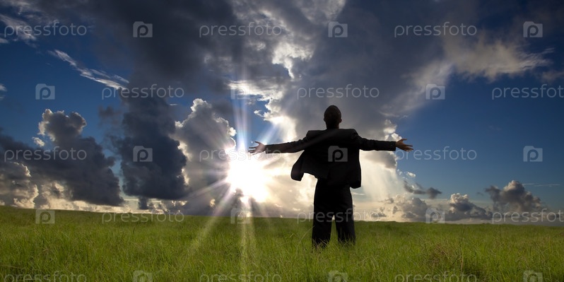 Молодой человек на зеленом поле