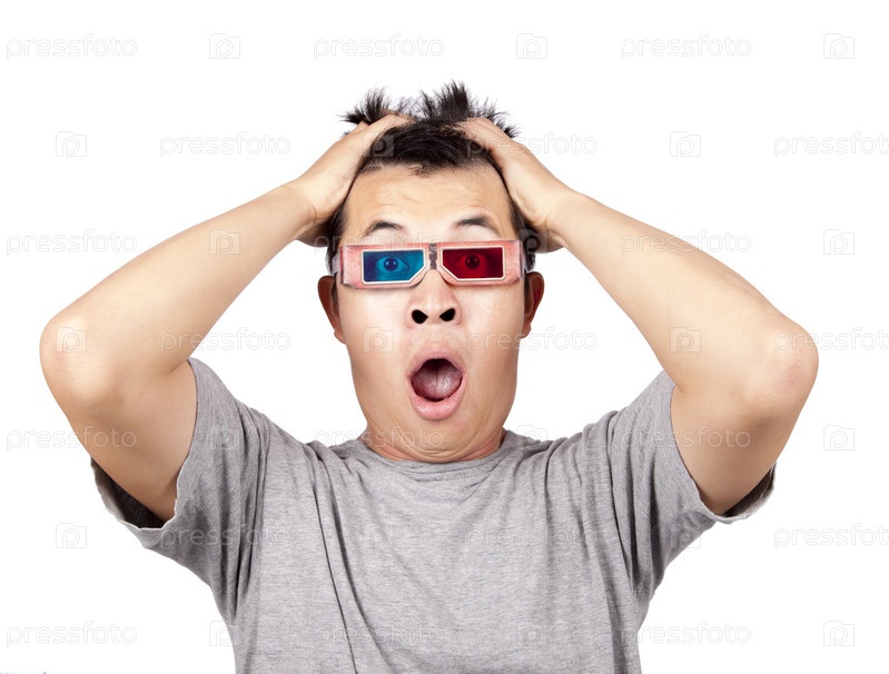 Удивленный мужчина в 3D-очках