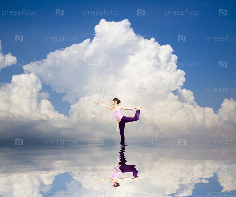Девушка занимается йогой на воде