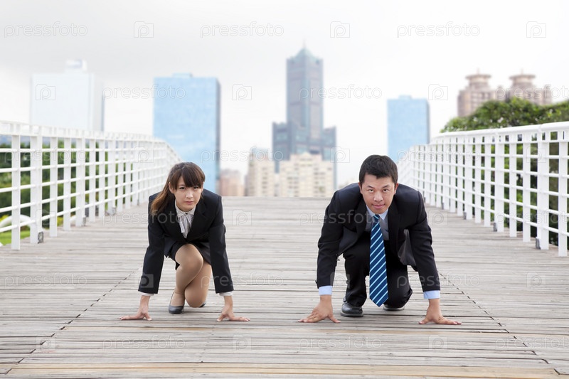 Деловые мужчина и женщина на старте