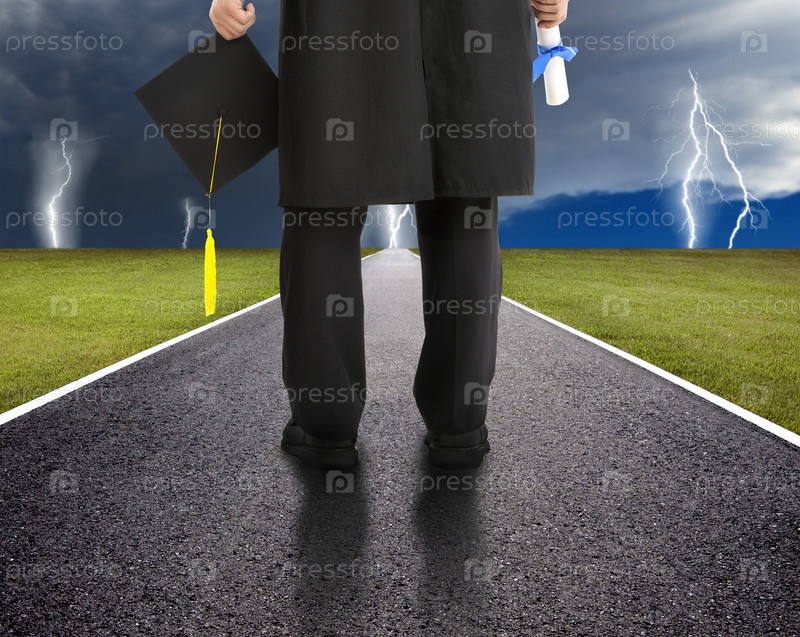 Выпускник стоит на дороге