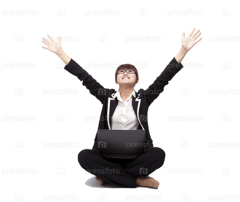 Счастливая молодая бизнес-леди с ноутбуком