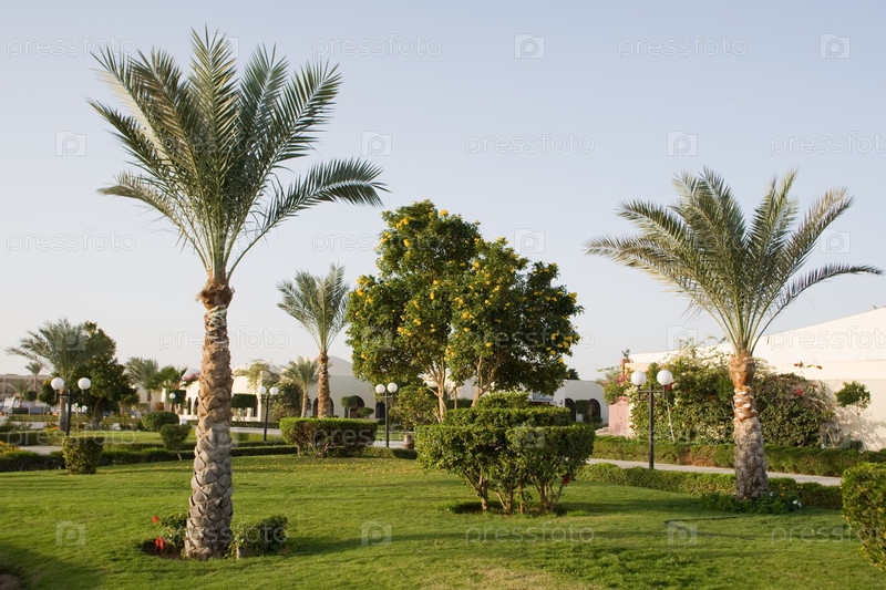 Деревья на территории отеля в Египте