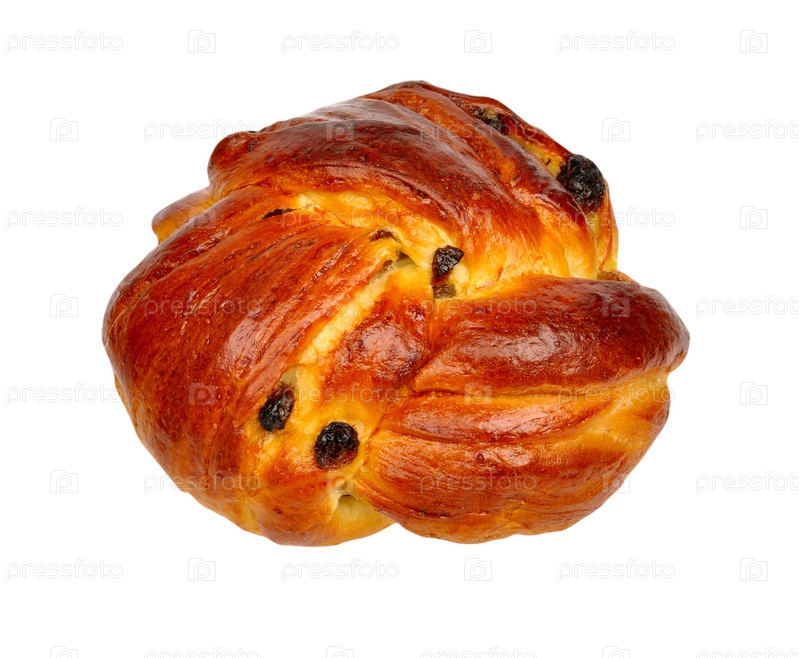 Булочка с изюмом на белом фоне